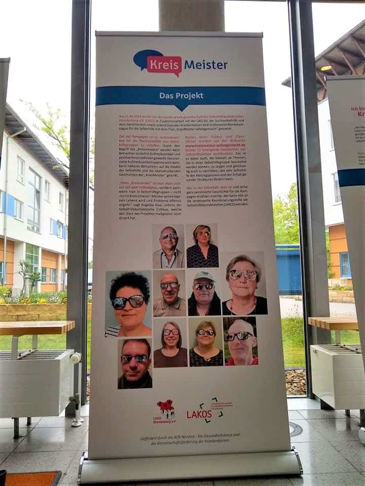 Die Wanderausstellung “KreisMeister selbstgemacht” ist noch bis Mittwoch, 26. April 2023, im Foyer des Carl-Thiem-Klinikums in Cottbus zu sehen. Präsentiert werden zehn bewegende Geschichten von Selbsthilfeaktiven. Es wird deutlich, wie