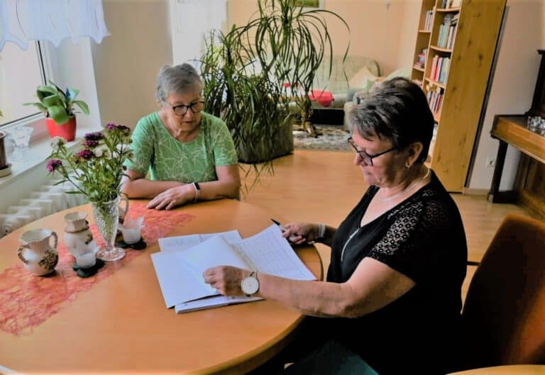 Doreen Jape (links im Bild) von der regionalen Kontakt- und Informationsstelle für Selbsthilfegruppen „FLÄMING“ in Jüterbog sagt „Ohne meine ehrenamtlichen Helfer wäre ich aufgeschmissen.“ – und spricht dabei vielen aus