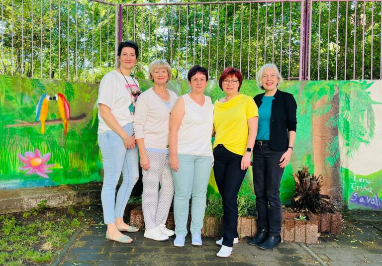 Im Rahmen der LAGS-Vorstandssitzung in Potsdam begrüßten die Vorstandsmitglieder Marion Brunnert, Manuela Krengel, Anke Polkowski (von links nach rechts) und Angelika Koal (nicht im Bild) die neue LAKOS-Mitarbeiterin Katharina Stang.