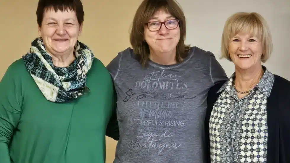 Im Rahmen unserer diesjährigen Weiterbildung gab es auch Grund zum Feiern. 30 Jahre Selbsthilfe-Zentrale Eisenhüttenstadt. Im Kreise der Selbsthilfekontaktstellenleiterinnen aus dem Land Brandenburg nahm Ramona Weinert, Leiterin der Selbsthilfe-Zentrale Eisenhüttenstadt, die Glückwünsche der Vorstandsmitglieder Marion Brunnert (links) und Angelika Koal (rechts) entgegen.
