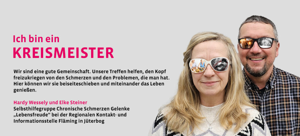Unsere neuen KreisMeister Elke und Hardy erzählen davon, wie gut es tut, die Perspektive zu wechseln. Gemeinsam den Fokus auf die schönen Dinge im Leben zu legen. Und in der Selbsthilfegruppe mit den anderen für ein paar Stunden die Schmerzen zu vergessen.