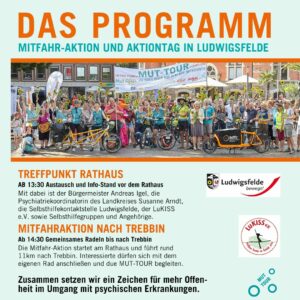 Unsere Selbsthilfekontaktstelle LuKiss lädt alle Interessierten herzlich ein, die 11 km gemeinsam zu radeln und ein Zeichen für mehr Offenheit im Umgang mit psychischen Erkrankungen zu setzen.
