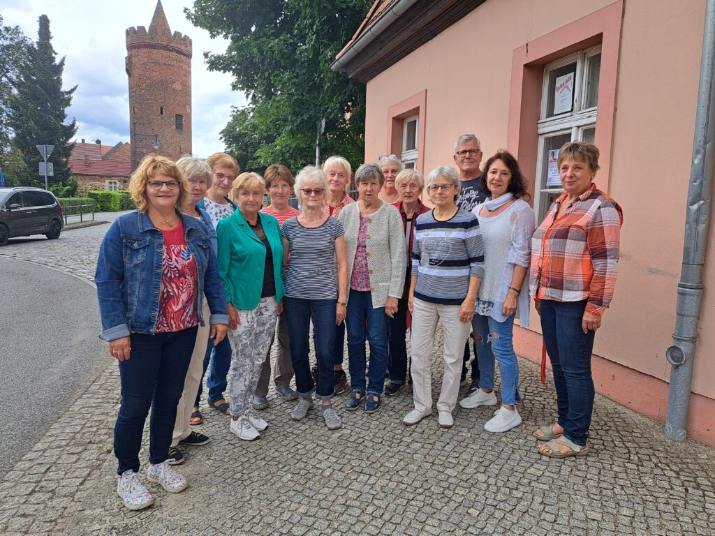Helfer*innenkreis: der DRK-Helfer*innenkreis mit Koordinatorin Cornelia Ewert (ganz rechts), im Hintergrund der Luckauer Torturm